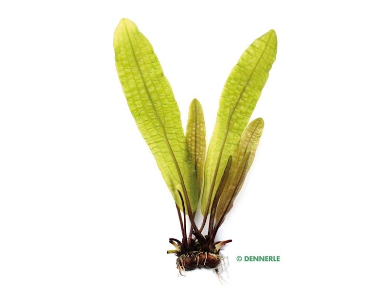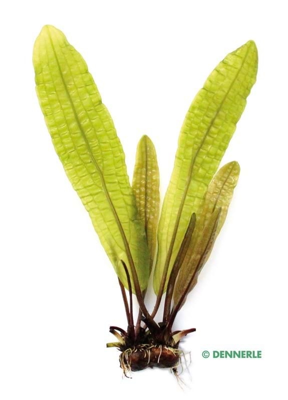 Hlízovitá rostlina z čeledi kalatkovitých. Tento druh patří k nejkrásnějším akvaristickým rostlinám tohoto rodu. Nápadné jsou především jeho zářivě zelené průhledné listy, které zdobí zajímavé krepování. Pokud začne růst rostliny stagnovat, je třeba jí dopřát fázi odpočinku. Je tedy potřeba ji umístit do malé tmavé nádrže s chladnou vodou, a to na dobu cca 3 – 4 měsíců. Poté je možné ji opět umístit do původní nádrže.