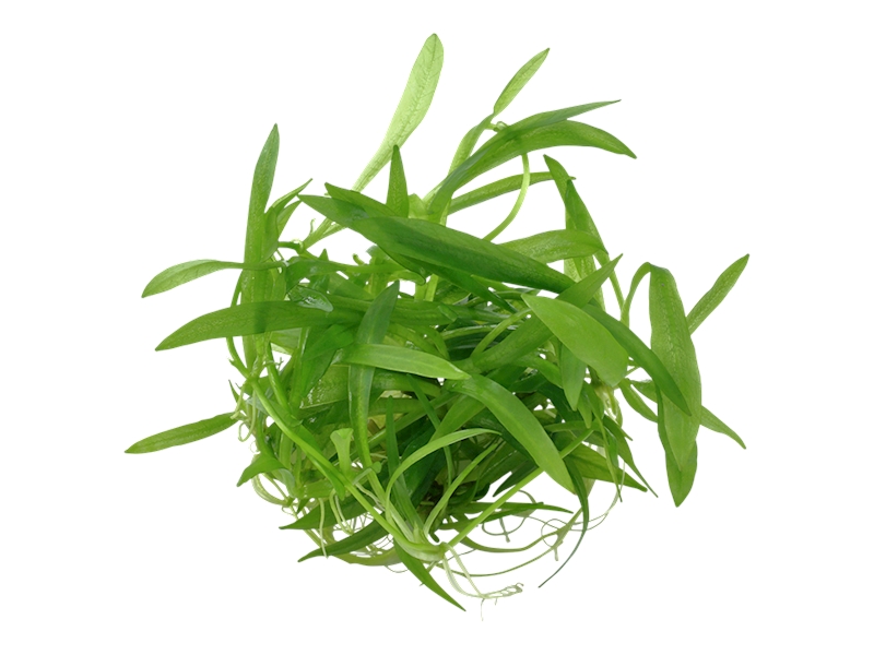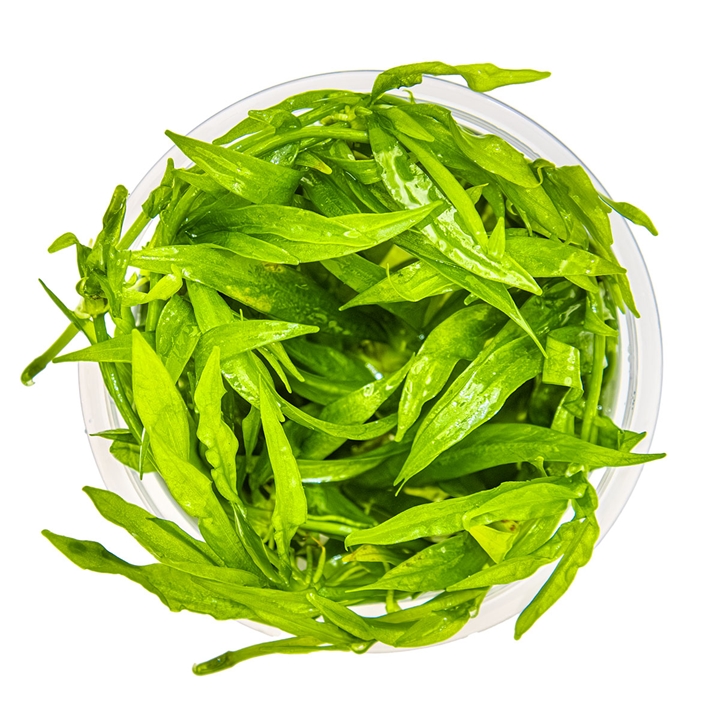 Přívlastek odnožující je zde naprosto namístě. Z každé z původních rostlinek vyrazily během týdne po vysazení 3 šlahouny s odnožemi po cca pěti cm. Nové listy jsou mnohem užší a spíše připomínají Sagittarii subulatu, což připisuji změně v pěstování z emerzní na submerzní. Jediným problémem jsou nájezdy ancistrusů, kteří si rostlinu velmi oblíbili. Listy jsou uspořádány v růžici a skoro se neliší v emerzní a submerzní formě. Čepele jsou téměř bezřapíkaté, žlutozelené, úzce kopinaté (šířka zřídka přesahuje 1cm).