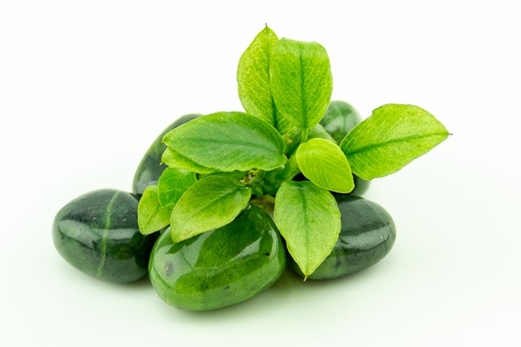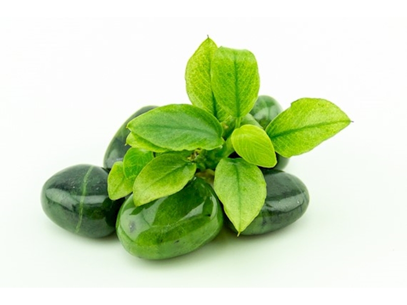 Novou a velmi speciální odrůdou Anubias nana je barevná varianta 'Jade'. Název odrůdy odkazuje na nejdůležitější drahokam v Číně - nefrit. Barva nefritu zahrnuje všechny odstíny zelené a často vykazuje zvláštní zrno v podobě malých žilek, pruhů a skvrn. Při bližším zkoumání lze tyto malé skvrny vidět také na novém Anubias 'Jade'. Barva listů vypadá zvláště kontrastně k tmavě zeleným rostlinám v popředí. Kultura je jako téměř u všech Anubias bezproblémová a jednoduchá - rostlina nejlépe roste na dřevě a kamenech. Zvláště se doporučuje pro malá akvária a aquascaping.