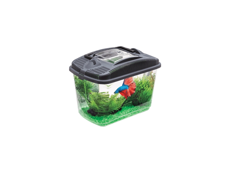 Betta kit představuje skvělou alternativu ke konvenčním akváriím. Díky hranatému tvaru nezpůsobuje zmatenost a dezorientaci ryb a zaručuje správnou kvalitu života. Skrz průhledné stěny můžete volně sledovat vnitřek akvária.