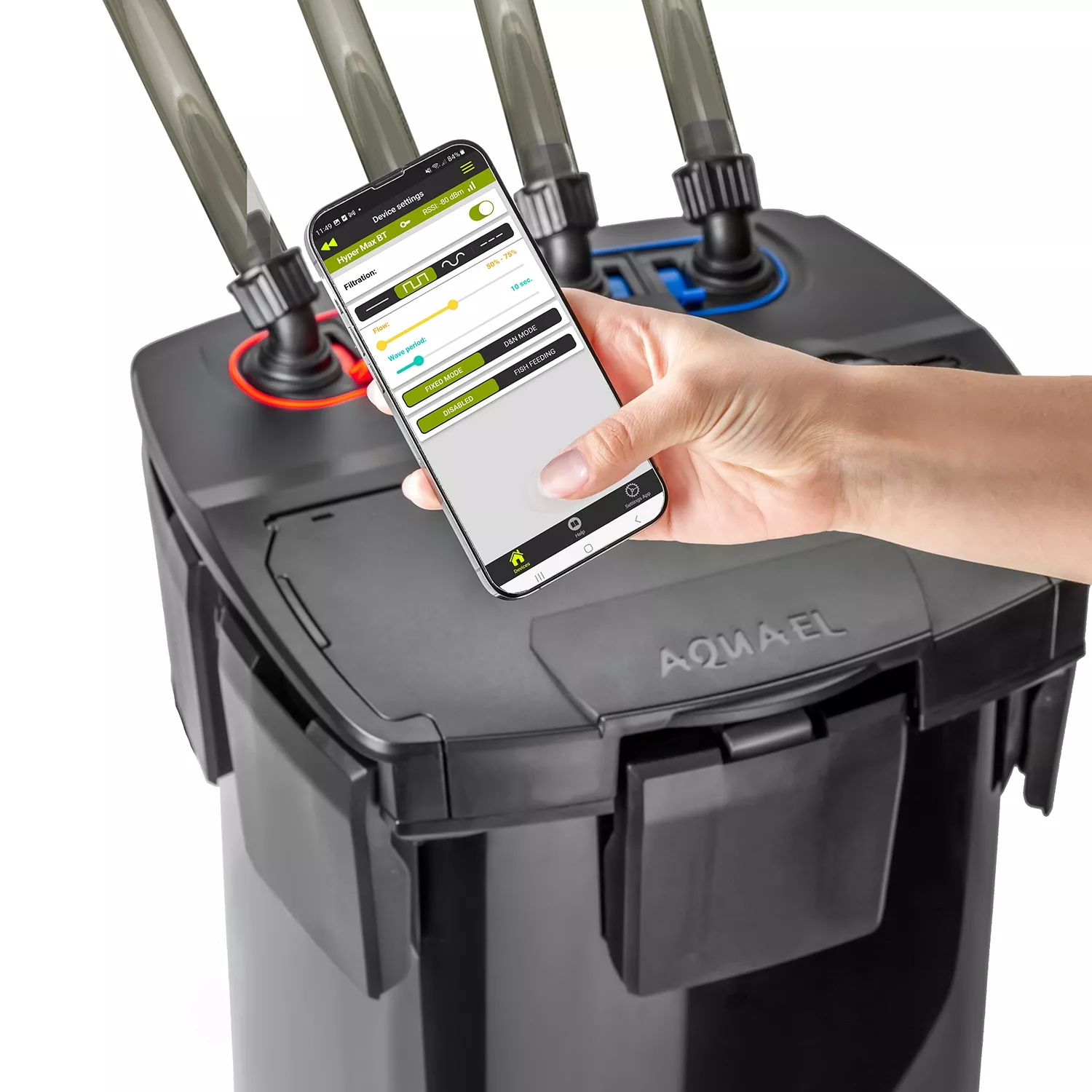 Hypermax 4500 BT umožňuje plně ovládat funkce filtru, aniž byste se museli přiblížit k akváriu. Zapínejte a vypínejte filtr prostřednictvím aplikace, kdykoli to potřebujete, což zaručuje rychlou reakci na změny podmínek v akváriu. Přesné ovládání průtoku čerpadla pomocí jednoduchých gest na displeji chytrého telefonu, které vám umožní přizpůsobit provoz filtru potřebám obyvatel akvária.
