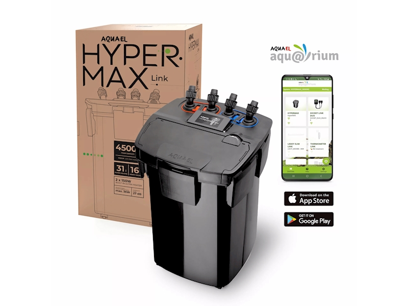 Hypermax Link je filtrační zařízení nové generace určené pro zkušené i začínající akvaristy. Kombinuje funkce filtrace a ohřevu a zajišťuje optimální životní podmínky v akváriu. Ovládá se na dálku pomocí aplikace AQUAEL AQU@RIUM.