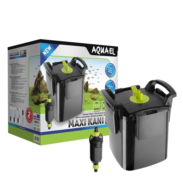 Nová řada výrobků MAXI KANI se skládá z kanisterových filtrů napájených samostatnými vysoce výkonnými čerpadly. Filtry jsou určeny pro použití jak v akváriích, tak v aqua-teráriích. Kombinují velkou filtrační kapacitu se svobodou instalace, protože napájecí čerpadlo může být umístěno buď uvnitř, nebo mimo nádrž ve svislé nebo vodorovné poloze.