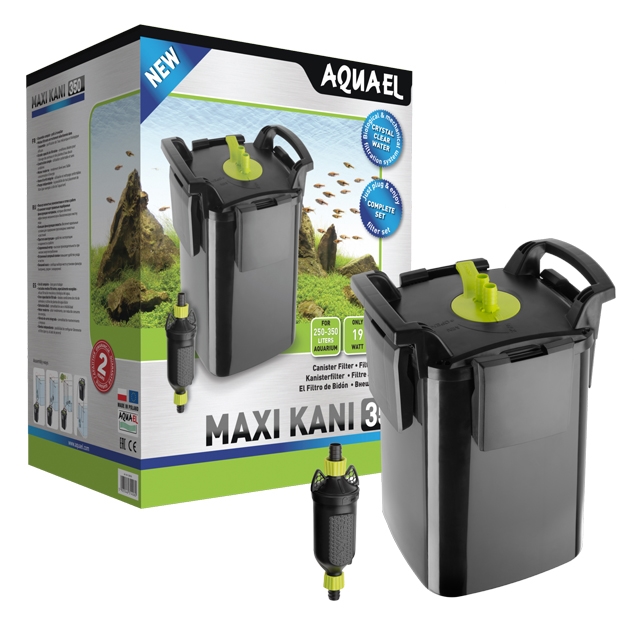 Nová řada výrobků MAXI KANI se skládá z kanisterových filtrů napájených samostatnými vysoce výkonnými čerpadly. Filtry jsou určeny pro použití jak v akváriích, tak v aqua-teráriích. Kombinují velkou filtrační kapacitu se svobodou instalace, protože napájecí čerpadlo může být umístěno buď uvnitř, nebo mimo nádrž ve svislé nebo vodorovné poloze.