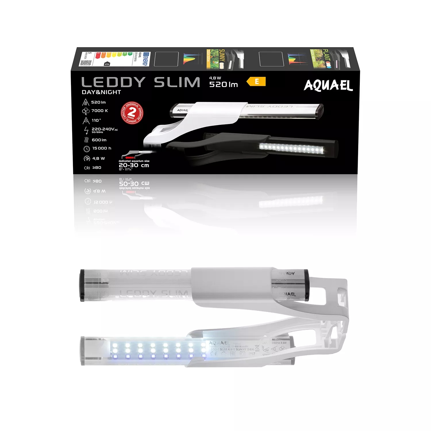 LEDDY SLIM 4,8W SUNNY D&N je určeno k osvětlení otevřených sladkovodních nádrží o délce 20 až 30 cm. Obsahuje pečlivě vybrané LED diody, které zajišťují dokonalé osvětlení akvária a zaručují jeho obyvatelům vynikající životní podmínky a jedinečný vizuální efekt. Jeho plochý, futuristický tvar a módní bílá barva z něj dělají perfektní doplněk pro moderní akvária a vypadá skvěle v každém interiéru. Navíc je univerzální – lze jej instalovat i na nádrže nestandardních velikostí.