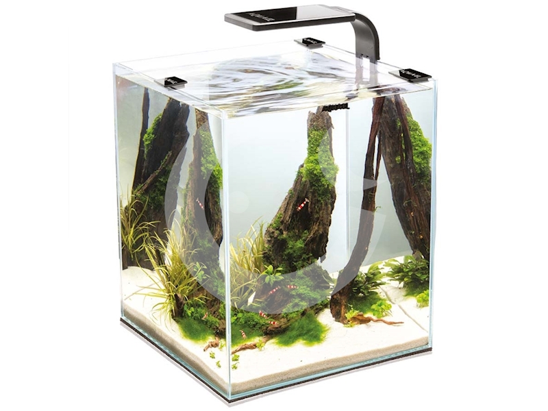 Plastové rohové klínky starších modelů byly nahrazeny ochrannou rohoží pod dnem nádrže. Další novinkou je chytré zavěšení krycího skla. Sada je nyní lehčí a ještě ozdobnější. Čistota vody je udržována malým PAT Mini filtrem vybaveným hustou houbou, která je bezpečná i pro nejmenší larvy krevet. Jako extra bonus obsahuje sada vynikající tabletky Acti Crustabs pro krevety, které zajišťují rychlý růst.