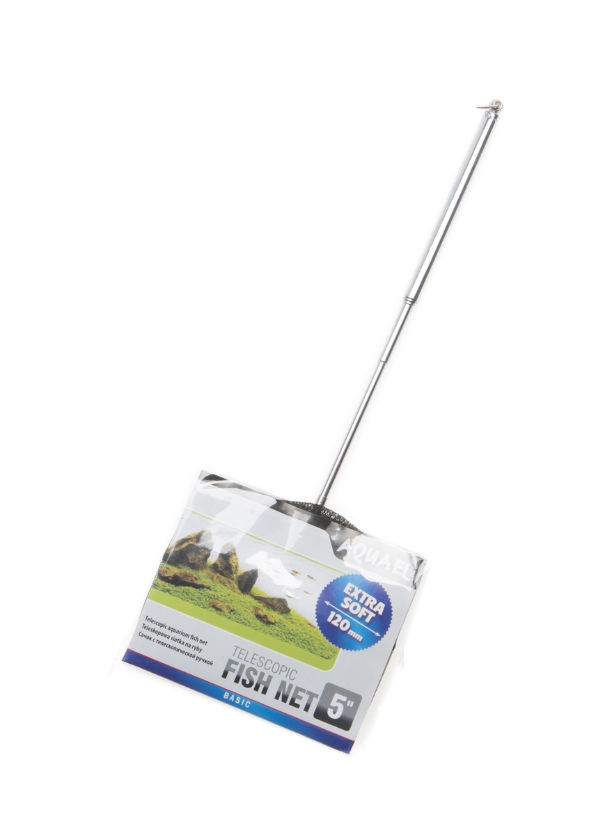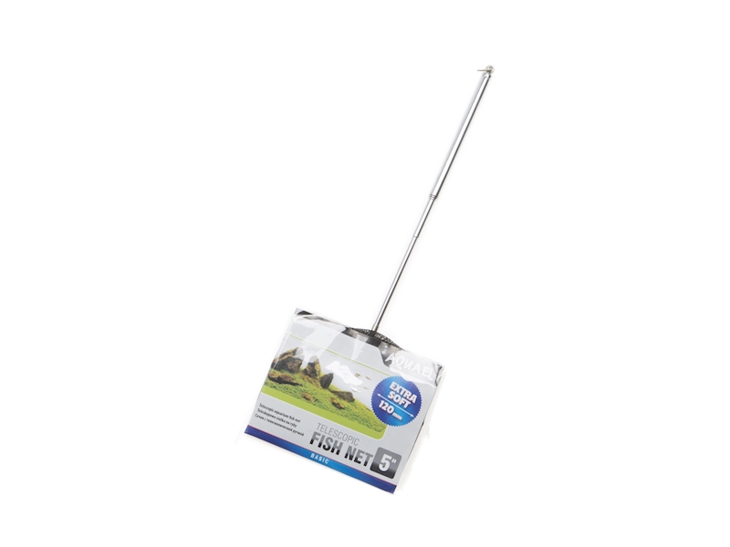 Teleskopická síťka z nerezové oceli určená pro odchyt ryb. Velikost síťky je 12,5 x 10 cm.