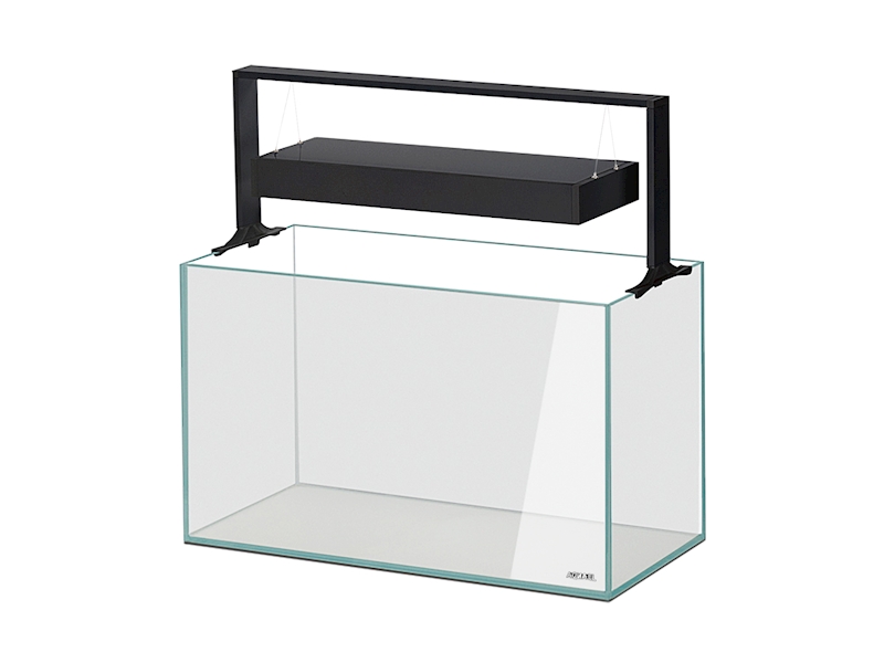 Sety také obsahují elegantní vyhrazenou lampu vybavenou vyměnitelnými osvětlovacími moduly Leddy Tube. Jednou z jeho výhod je možnost výměny jednotlivých prvků, nikoliv celé lampy. Lampa byla umístěna na estetickém rámu s nastavitelnou výškou. Doplněním kabelové omotávky jsme se ujistili, že vzhled sady byl propracován do každého detailu. Sada obsahuje také podložku do akvária.