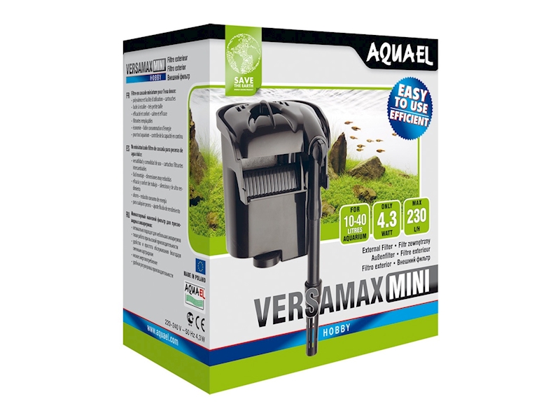 VERSAMAX je externí závěsný filtr určený pro filtraci a provzdušňování vody v běžných a nano akváriích. Díky vysokému průtoku zajišťuje filtr intenzivní filtraci akvarijní vody, přičemž vyžaduje velmi malý prostor. Filtr je velmi tichý a snadno se používá. Filtry VERSAMAX lze použít ve vodních nádržích o objemu od 50 do 300 litrů.