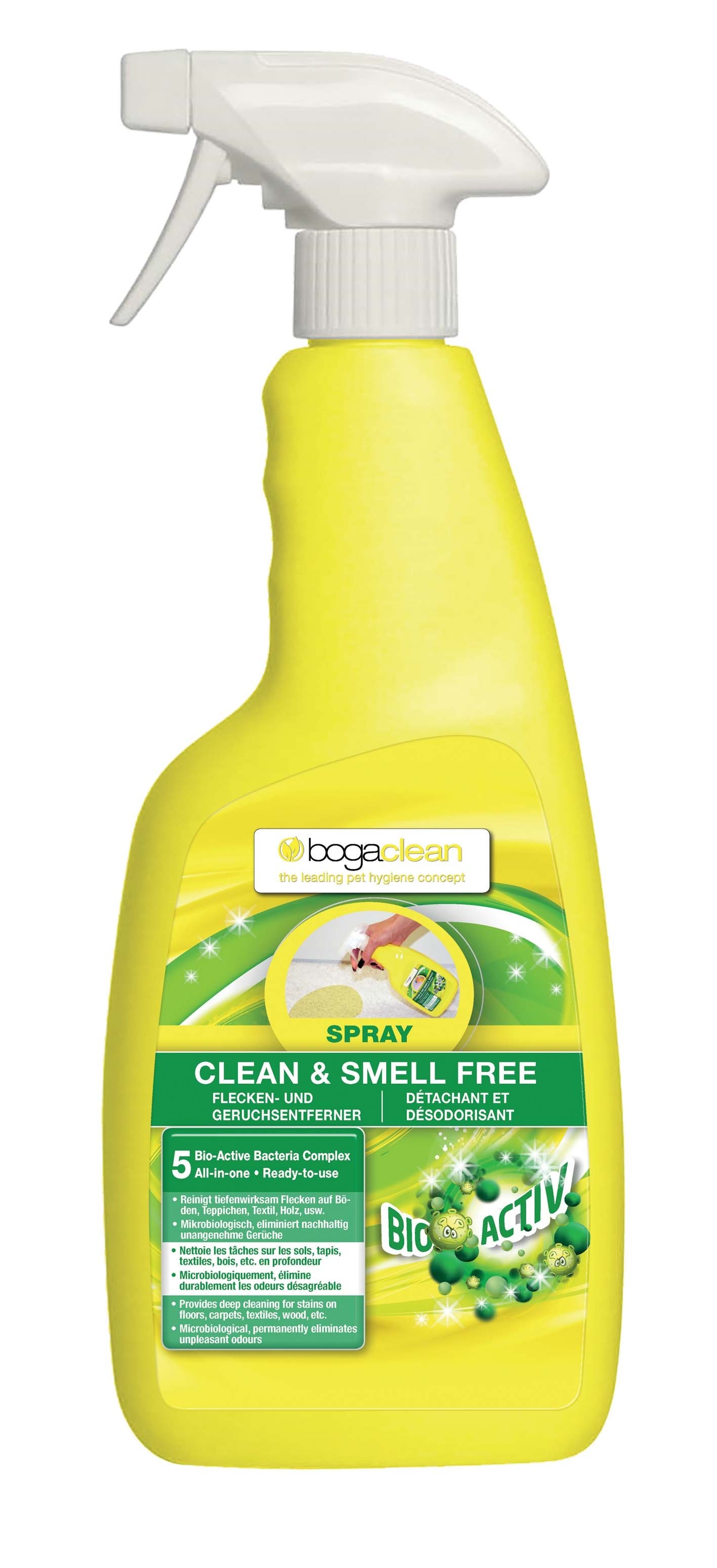 bogaclean Sprej CLEAN & SMELL FREE je účinný čistící prostředek, který mikrobiologicky a trvale eliminuje nepříjemný organický zápach (trus, moč, zvratky, značkování, inkontinence atd.).