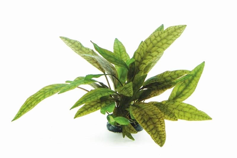 Raritou mezi kryptokorynami je Cryptocoryne x purpurea původem z Jihovýchodní Asie. Jedná se přitom o přírodní hybrid mezi Cryptocoryne griffithii a Cryptocoryne cordata. Popisovaný druh pochází z Bornea a má výjimečně mramorované listové čepele. Růst je mnohem pomalejší než u jiných známých druhů v akvaristice. S výškou 10 cm (podle dosavadní zkušenosti s touto rostlinou v akváriích) zůstává i při plné velikosti relativně malá, je proto vhodná do popředí akvária. Na živiny bohatý půdní substrát je jako u všech kryptokoryn velice důležitý, protože mnoho živin je absorbováno kořenovým systémem.