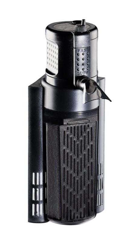 Voda cirkulující přes filtr je čištěna ve dvou stupních: nejdříve jsou odfiltrovány pomocí pěnové houby zbytky a hrubé částice (mechanická filtrace), sekundárně potom prochází voda přes kontejner s aktivním uhlím (k dosažení čistoty a průzračnosti vody) nebo přes keramická filtrační média ( kolonozovaná bakteriemi kontrolujícími hladinu dusičnanů). Vhodné pro akvária o objemu od 80 do 150 litrů.