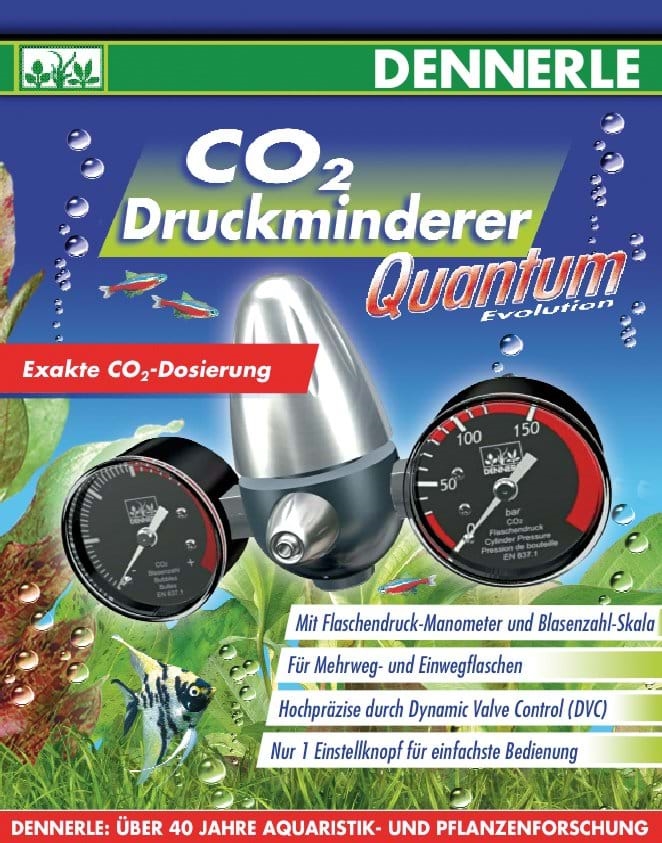 V akvaristice jsou na redukční ventily kladeny nejvyšší požadavky. Kvalita redukčních ventilů je rozhodující předpoklad pro bezpečnost a přesnost dávkování CO2. Firma DENNERLE Vám nyní nabízí novou řadu redukčních ventilů Evolution, která ztělesňuje současnou nejmodernější technologii CO2 systémů. Jejich obsluha je velice jednoduchá a zároveň vynikají vysoce precizním a spolehlivým zpracováním.