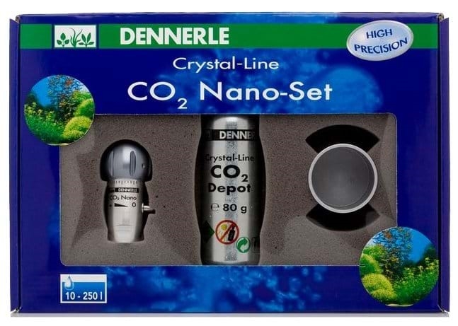 Pro zajištění krásného a silného růstu akvarijních rostlin by měla být také malá akvária zásobována CO2. Pro tato malá akvária není každopádně vhodná běžná CO2 akvarijní technika. S redukcí tlaku určenou pro větší akvária se totiž většinou nedá dobře nastavit potřebný, jen minimální přídavek CO2 v množství několika bublinek za minutu. Tento problém však řeší nový systém dávkování CO2 od firmy Dennerle CRYSTAL-LINE.