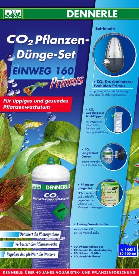 - Komfortní způsob dodávání CO2 do akvária do 160L