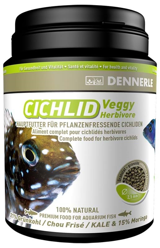 - Aby bylo zajištěno optimální složení jídelníčku těchto rostlinožravých cichlid, obsahuje krmivo CICHLID Veggy Herbivore také červenou vápnitou řasu (vysoký obsah vitamínů a stopových prvků)