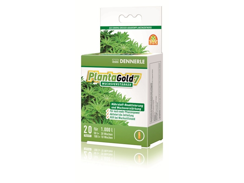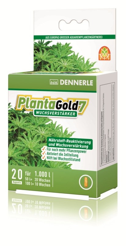 PlantaGold 7 má několikanásobný účinek: podporuje růst, obsažené přírodní rostlinné enzymy stimulují buněčné dělení a růst nových listů, posiluje celou rostlinu. Živiny, které přestanou být účinné, jsou navázány a odstraněny z akvária. Aktivní chelátové železo zajistí sytě zelené vybarvení listů rostlin.