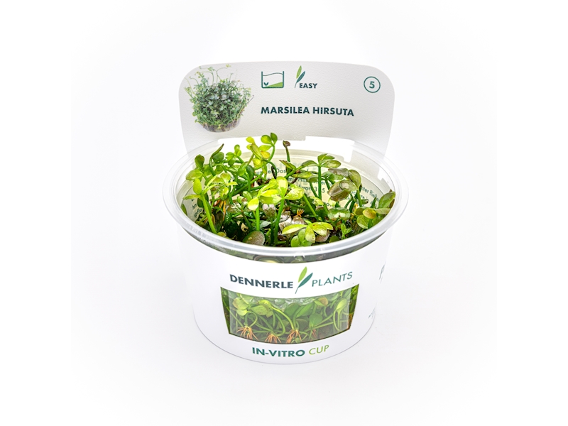 Marsilea hirsuta patří k čeledi kapraďovitých a pochází z Austrálie. Vzhledem k nízkému vzrůstu je popisována jako trpasličí kapradina. Při vytvoření bahenních podmínek mimo vodu vytváří rostlina malé čtyřlístkovité lístečky, pod vodou vytváří většinou oválné lístky, které silně připomínají rostlinu Glossostigma. Trpasličí kapradí má ale jednodušší kulturu a je nenáročné na údržbu. Trvá sice určitý čas, než se nová rostlinka v akváriu aklimatizuje, ale postupně se vytváří atraktivní rostlinný koberec. V ideálním případě se mají emerzní výhonky kompletně odstřihnout, aby se mohly stále vytvářet nové submerzní výhonky.