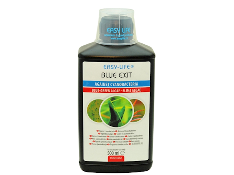 BLUE EXIT odstraňuje modré nebo bahnité řasy, mazlavé řasy a sinice (Cyano sp.) ve sladkovodních akváriích.