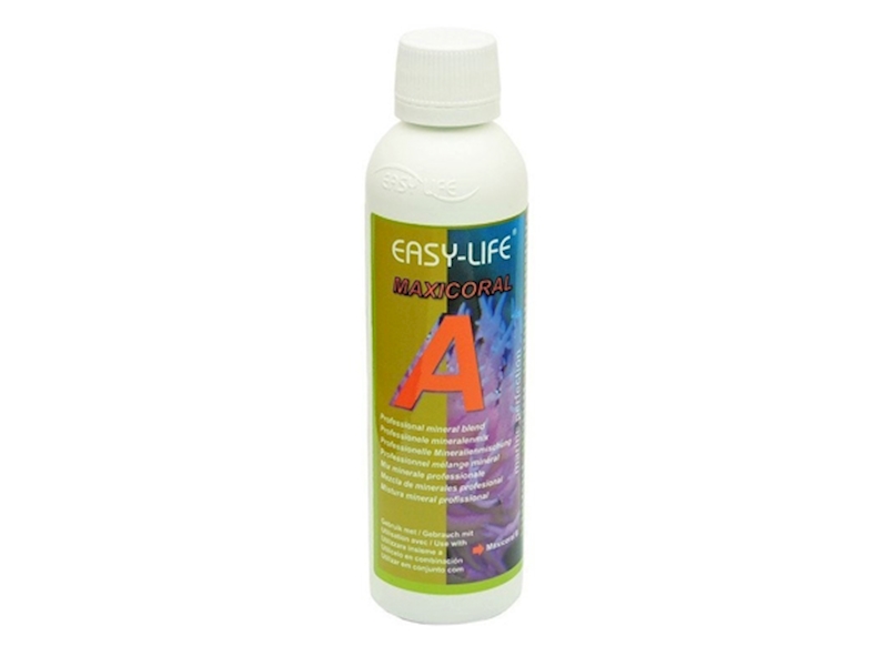 Maxicoral A je speciální kompletní směs minerálů pro krásné a zdravé korály, které jsou přípravkem (tzv. komplexem stroncia a baria) zásobovány. Dále Maxicoral A obsahuje také stopové prvky: Mn, Fe, Mo, Li, Rb, Cr, Co, Se, Cu, Zn, Ni a Sn.