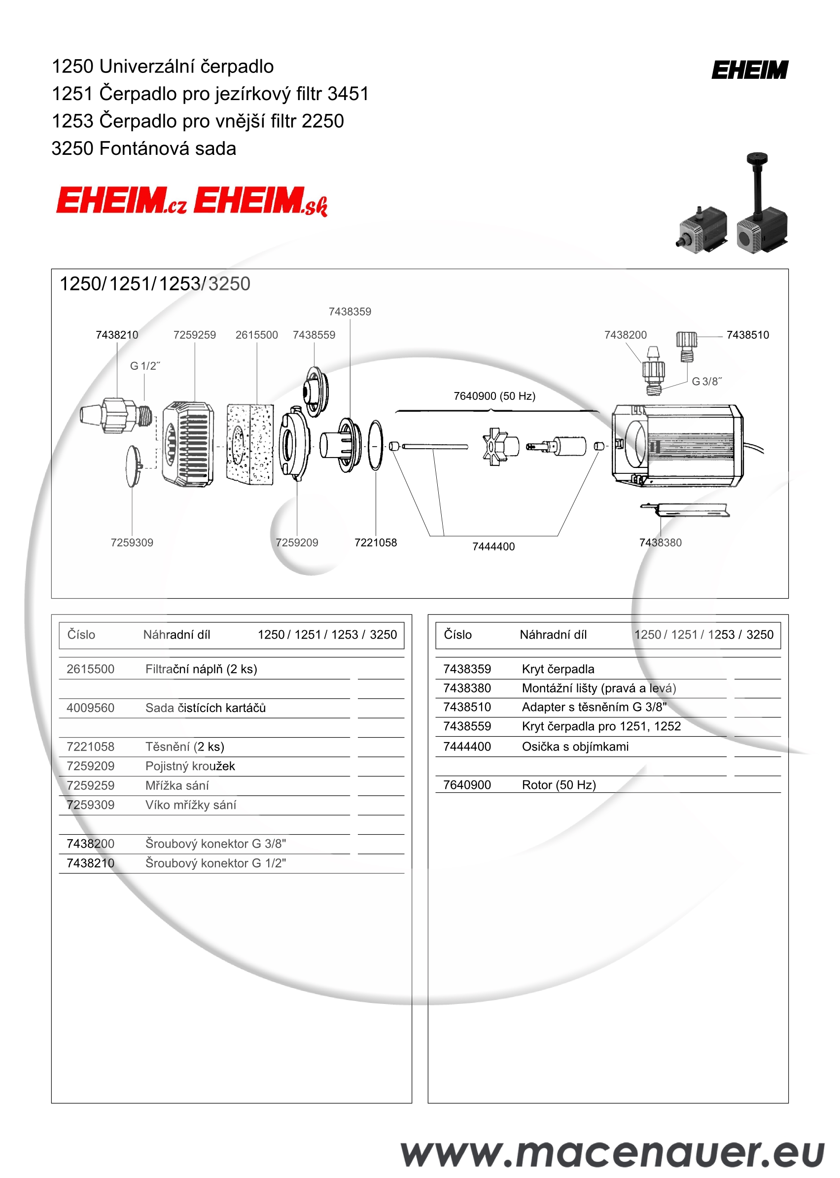 Mnohostranné úkoly, jako je cirkulace vody, čerpání a její doprava, přebírají spolehlivá odstředivá čerpadla Eheim. Tato univerzální čerpadla mohou pracovat jak přímo pod vodou, tak mohou být nasazena také jako vnější čerpadla mimo akvária, nádrže. Díky jejich odstupňovanému výkonu od 270 do 4500 l/hod a různým možnostem montáže, mohou plnit nejrůznější úkoly.
