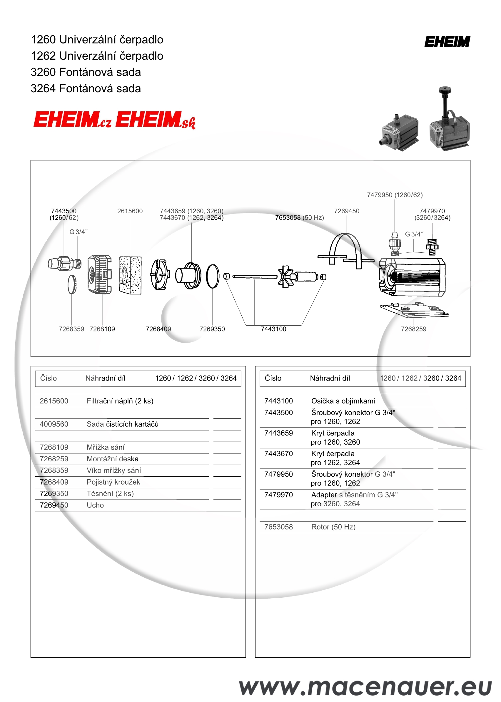 Mnohostranné úkoly, jako je cirkulace vody, čerpání a její doprava, přebírají spolehlivá odstředivá čerpadla Eheim. Tato univerzální čerpadla mohou pracovat jak přímo pod vodou, tak mohou být nasazena také jako vnější čerpadla mimo akvária, nádrže. Díky jejich odstupňovanému výkonu od 270 do 4500 l/hod a různým možnostem montáže, mohou plnit nejrůznější úkoly.