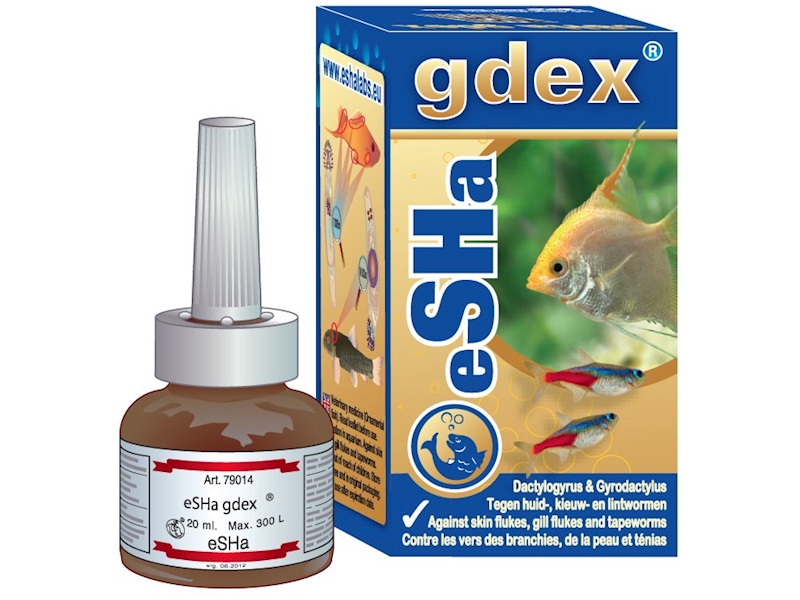 eSHa gdex je speciálně vyvinutý proti kožním a žaberním parazitům (jako Gyrodactylus sp. a Dactylogyrus sp.) a tasemnici (Cestoda).