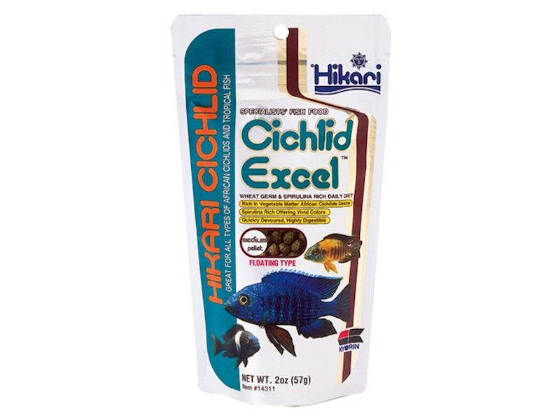 Vynikající krmivo s vyváženou kombinací rostlinných složek, odpovídá nutričním potřeba většiny býložravých ryb. Krmivo obsahuje pšeničné klíčky, které mají vysoký obsah vitaminu E a tím u ryb podporují dlouhodobé zdraví a sílu. Obsahují také kyselinu linolovou, která podporuje zdravý vnitřních orgánů a aktivní reprodukci. Další výhodou pšeničných klíčků, které jsou zastoupeny v každém granulátu Hikari Cichlid Excel, je snadná stravitelnost. Kvalitní přísadou je kultivovaná spirulina k dosažení brilantních, krásných barev, což u ostatních značkových krmiv obvykle nenajdete. Vysoký obsah Stabilizovaného vitaminu C pomáhá potlačovat stres, zvyšuje imunitu vůči infekčním chorobám a udržuje tak ryby při dobrém zdravý. Doporučeno pro cichlidy z jezer Malawi a Tanganika.