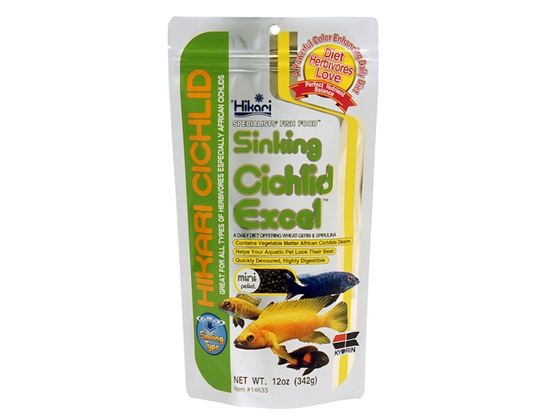 - Hikari Cichlid Sinking Cichlid Excel kombinuje pšeničné klíčky a spirulinu za vzniku vynikající rostlinné stravy, kterou ryby všech typů mají velmi rády.