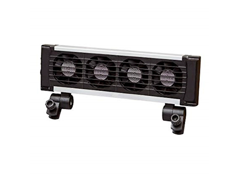 Chladící ventilátorová jednotka. Řešení pro přehřívající se akvária. Chladící jednotka s na sobě nezávisle naklápěcími ventilátory - až 55°. Ochladí akvárium až o 4°C. Ventilátory jsou naklápěcí, na sobě nezávislé.