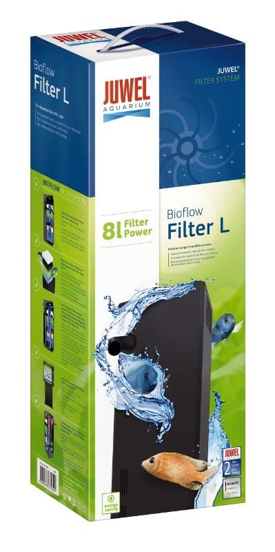 Juwel Bioflow Filter System obsahuje dvoufázový biologický vnitřní filtrační systém, včetně čerpadla a filtračních materiálů. Filtrační systém lze jednoduše instalovat pomocí akvarijního silikonu.