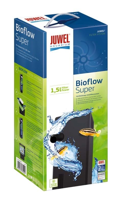 Juwel Bioflow Filter System obsahuje dvoufázový biologický vnitřní filtrační systém, včetně čerpadla a filtračních materiálů. Filtrační systém lze jednoduše instalovat pomocí akvarijního silikonu.