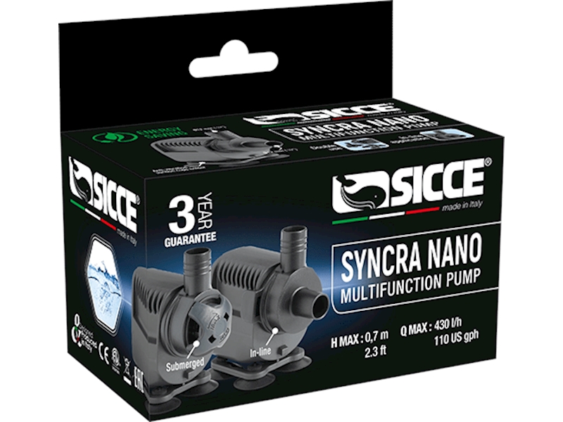 SYNCRA NANO v sobě spojuje všechny kvality řady SYNCRA do nejmenšího a nejkompaktnějšího čerpadla na trhu. Standardně se dodává s otočným výstupem a přísavkami, díky čemuž je skvělým oběhovým čerpadlem pro jakoukoliv nano nebo piko nádrž. Druhý přiložený nástavec umožňuje jeho externí použití in-line, na rozdíl od jakéhokoli jiného čerpadla této velikosti nebo třídy. SYNCRA NANO je ideální pro použití ve sladké nebo slané vodě v široké škále aplikací.