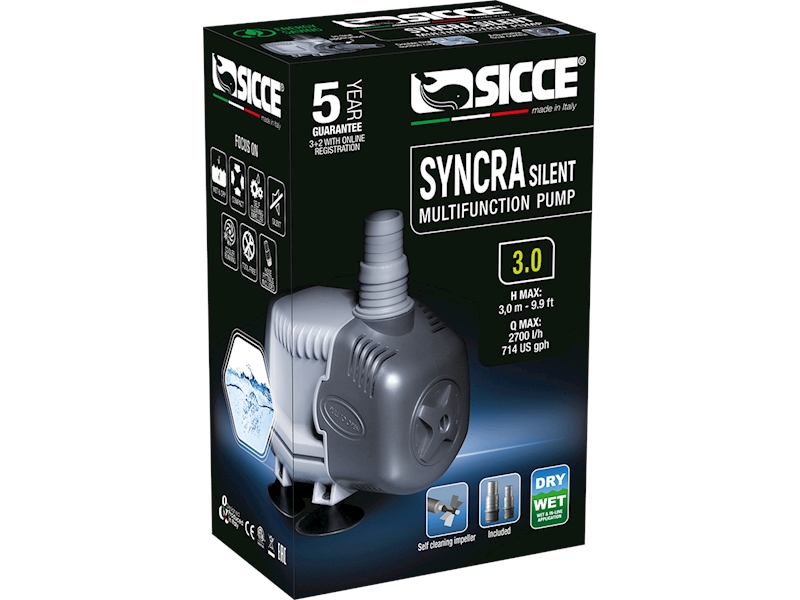 Syncra Silent: nová generace čerpadel, vytvořená pro spojení zvýšeného výkonu s extrémní tichostí a úsporou energie. Díky své inovativní technologii mají tato čerpadla mnohostranné využití. Ve skutečnosti jsou čerpadla Syncra Silent ideální pro sladkovodní a mořská akvária, terária a akvária pro želvy, proteinové skimmery, vodní chlazení, vnitřní a venkovní fontány a pro jakékoli další použití, která vyžadují vysoce výkonné a extrémně tiché čerpadlo. Syncra Silent: design, spolehlivost, 100% ticho, spojené s vynikající technologií Sicce.