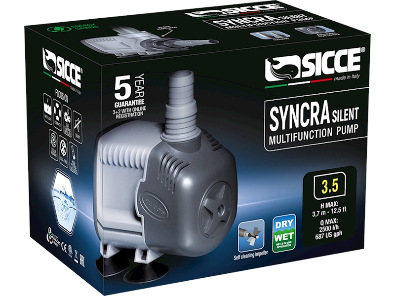 Syncra Silent: nová generace čerpadel, vytvořená pro spojení zvýšeného výkonu s extrémní tichostí a úsporou energie. Díky své inovativní technologii mají tato čerpadla mnohostranné využití. Ve skutečnosti jsou čerpadla Syncra Silent ideální pro sladkovodní a mořská akvária, terária a akvária pro želvy, proteinové skimmery, vodní chlazení, vnitřní a venkovní fontány a pro jakékoli další použití, která vyžadují vysoce výkonné a extrémně tiché čerpadlo. Syncra Silent: design, spolehlivost, 100% ticho, spojené s vynikající technologií Sicce.