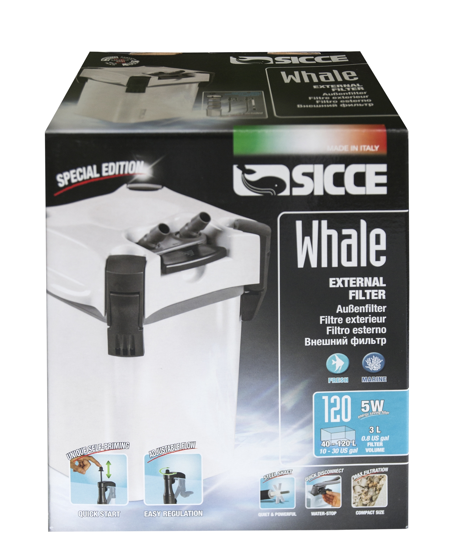 Prvně představujeme nové vnější filtry SICCE Whale v bílé barvě s jednoduchým řešením pro spouštění filtru (Quick Start) a praktickým odpojováním hadic (Quick Disconnect). Již nikdy se k Vašemu filtru nebudete muset ohýbat! Jedinečná regulace filtru (Easy Regulation) je chytře umístěna u vrchní hrany akvária. Série filtrů SICCE Whale je extrémně tichá, energeticky úsporná a vyznačuje se vysokou filtrační kapacitou. Vnější filtry SICCE Whale, pro sladkovodní a mořská akvária, jsou dodávány s kompletním příslušenstvím a účinným filtračním materiálem. Shrnuto a podtrženo, jedná se o řadu nejmodernějších vnějších filtrů na světě!