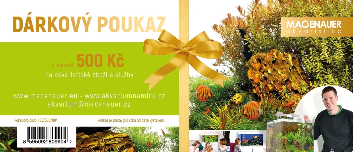 Chcete udělat svým blízkým radost, ale nemůžete vybrat konkrétní produkt? Dejte jim k Vánocům, svátku nebo narozeninám dárkový poukaz na akvaristické zboží a služby v hodnotě 500, 1000 nebo 2000 Kč!