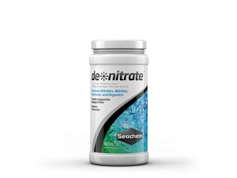 Přípravek de*nitrate odstraňuje dusičnany, dusitany, čpavek a organické látky ze sladkovodní i mořské vody. Vysoká poréznost de-nitrate podporuje proliferaci jak aerobních, tak anaerobních bakterií, které dále odstraňují tyto toxické vedlejší produkty akvária. I když je de*nitrate dokonce vyčerpaný, tak jako organický adsorbent poskytuje nadále vynikající podporu biologickému filtru a nemusí se odstraňovat.