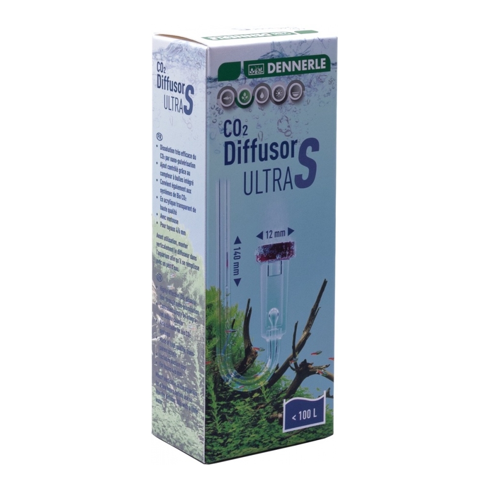 Dennerle nabízí řadu ultramoderních přídavných jednotek CO2 pod názvem „CO2 Diffusor Ultra“. Difuzéry jsou vyrobeny z průhledného akrylátu odolného proti rozbití. Díky tomu je s nimi mnohem bezpečnější manipulace než s konvenčními skleněnými difuzory a také jsou ideální například pro dětská akvária. Díky svému ultrakompaktnímu tvaru mohou být instalovány „neviditelně“ do akvária pomocí dodaného držáku. Přes jejich atraktivní vzhled však nejsou v akváriu nápadné. Nově vyvinuté membrány jsou vyrobeny ze speciálního slinutého materiálu s extrémně malými póry. Výsledná nano-atomizace přiváděného CO2 zajišťuje vysoce účinné a bezpečné rozpuštění této důležité rostlinné výživy v akváriu.