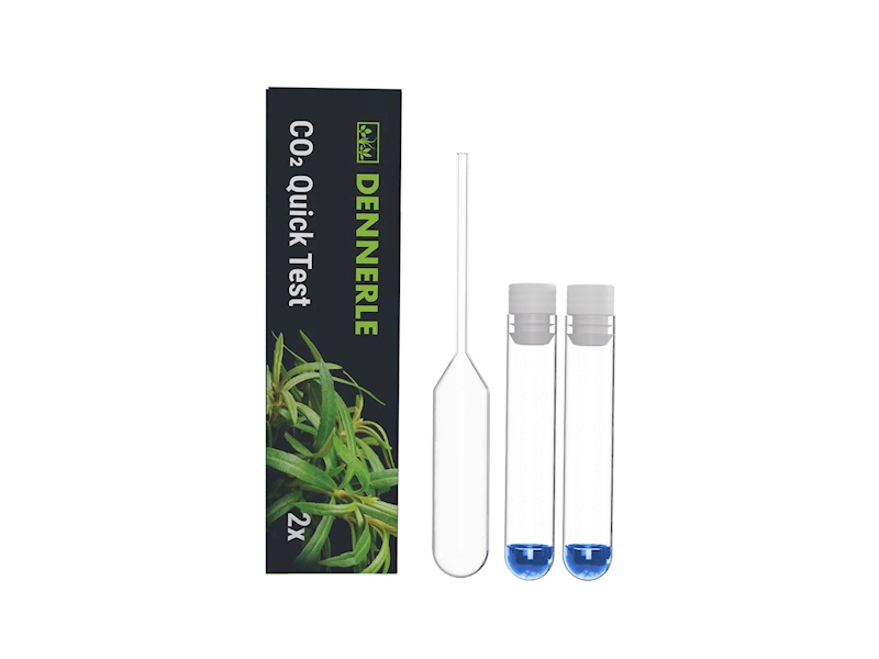 Pomocí tohoto dvojitého testu můžete rychle zjistit, zda akvárium obsahuje dostatek CO 2 (kapalné sloučeniny uhlíku se neměří) . Jednoduše nalijte akvarijní vodu do zkumavky, krátce protřepejte a barevná reakce ukáže výsledek.