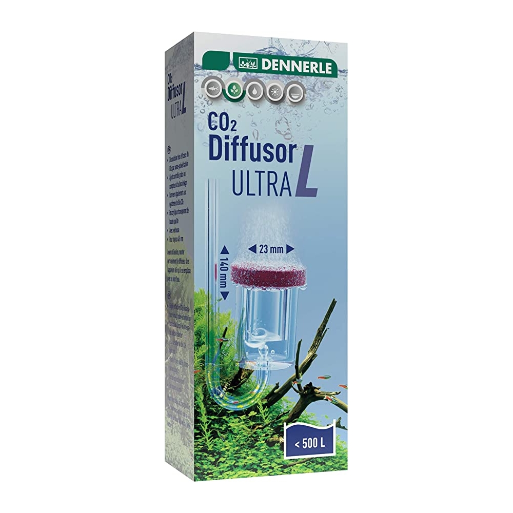 Dennerle nabízí řadu ultramoderních přídavných jednotek CO2 pod názvem „CO2 Diffusor Ultra“. Difuzéry jsou vyrobeny z průhledného akrylátu odolného proti rozbití. Díky tomu je s nimi mnohem bezpečnější manipulace než s konvenčními skleněnými difuzory a také jsou ideální například pro dětská akvária. Díky svému ultrakompaktnímu tvaru mohou být instalovány „neviditelně“ do akvária pomocí dodaného držáku. Přes jejich atraktivní vzhled však nejsou v akváriu nápadné. Nově vyvinuté membrány jsou vyrobeny ze speciálního slinutého materiálu s extrémně malými póry. Výsledná nano-atomizace přiváděného CO2 zajišťuje vysoce účinné a bezpečné rozpuštění této důležité rostlinné výživy v akváriu.