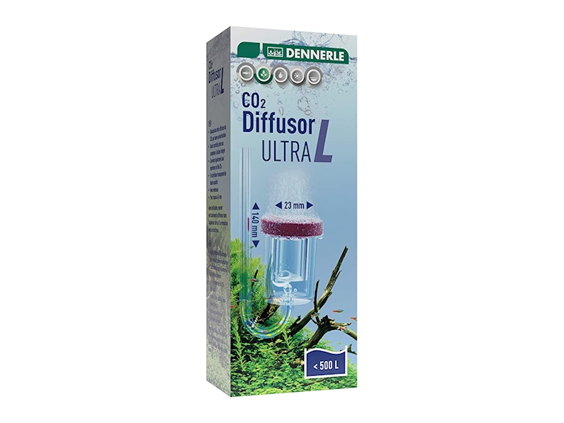 Dennerle nabízí řadu ultramoderních přídavných jednotek CO2 pod názvem „CO2 Diffusor Ultra“. Difuzéry jsou vyrobeny z průhledného akrylátu odolného proti rozbití. Díky tomu je s nimi mnohem bezpečnější manipulace než s konvenčními skleněnými difuzory a také jsou ideální například pro dětská akvária. Díky svému ultrakompaktnímu tvaru mohou být instalovány „neviditelně“ do akvária pomocí dodaného držáku. Přes jejich atraktivní vzhled však nejsou v akváriu nápadné. Nově vyvinuté membrány jsou vyrobeny ze speciálního slinutého materiálu s extrémně malými póry. Výsledná nano-atomizace přiváděného CO2 zajišťuje vysoce účinné a bezpečné rozpuštění této důležité rostlinné výživy v akváriu.