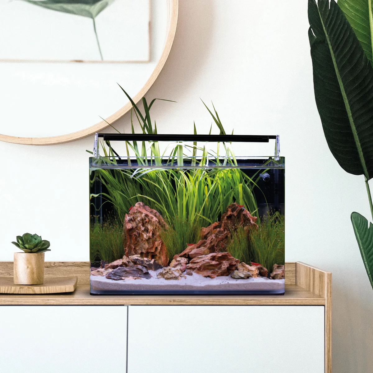Ideální pro rostliny: Díky výšce pouze 20 cm proniká světlo velmi efektivně až ke dnu, což zaručuje prosperitu i náročným kobercovým rostlinám.