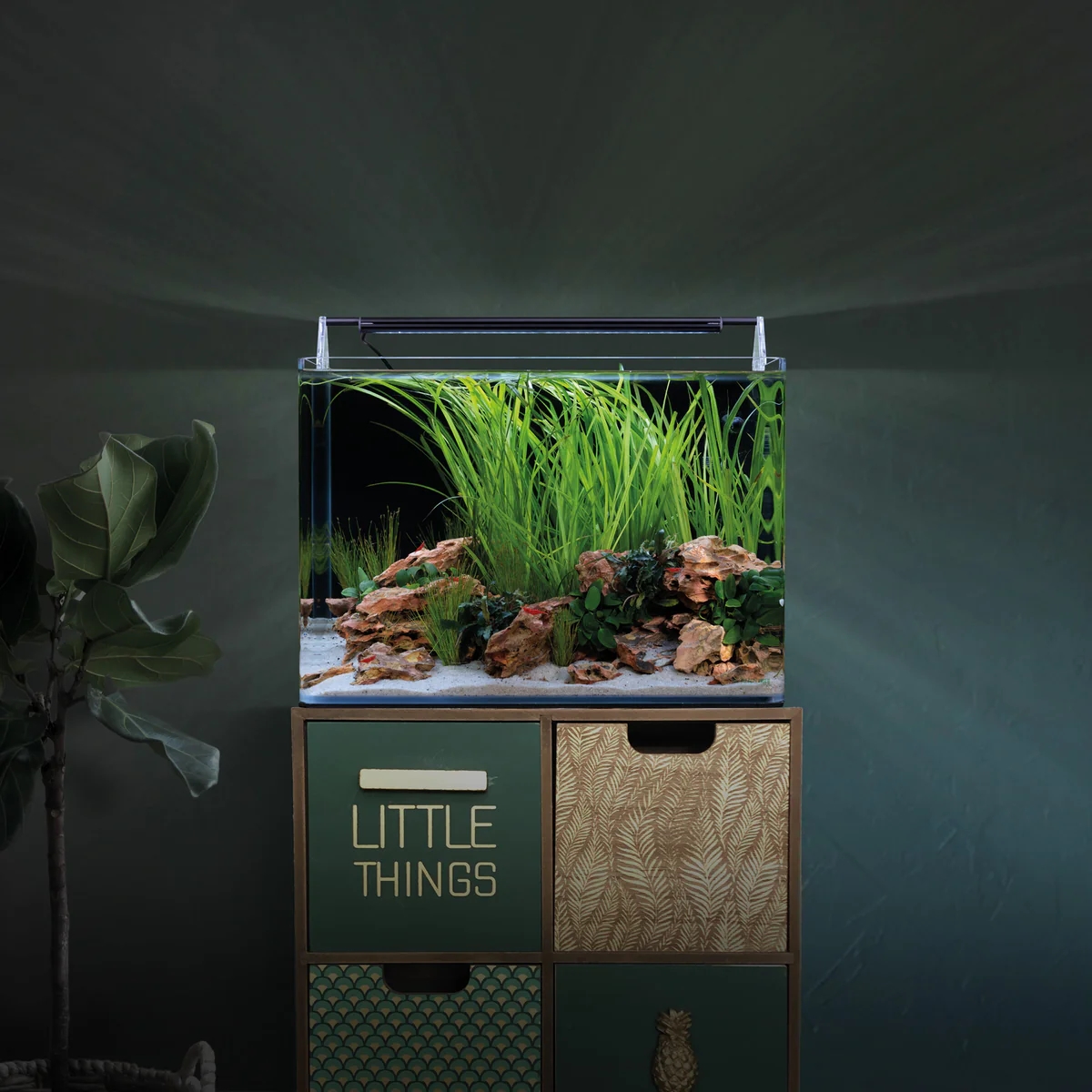 LED osvětlení Nano Style: Moderní svítidlo s barevným spektrem optimalizovaným pro zdravý růst rostlin a věrné barvy živočichů.