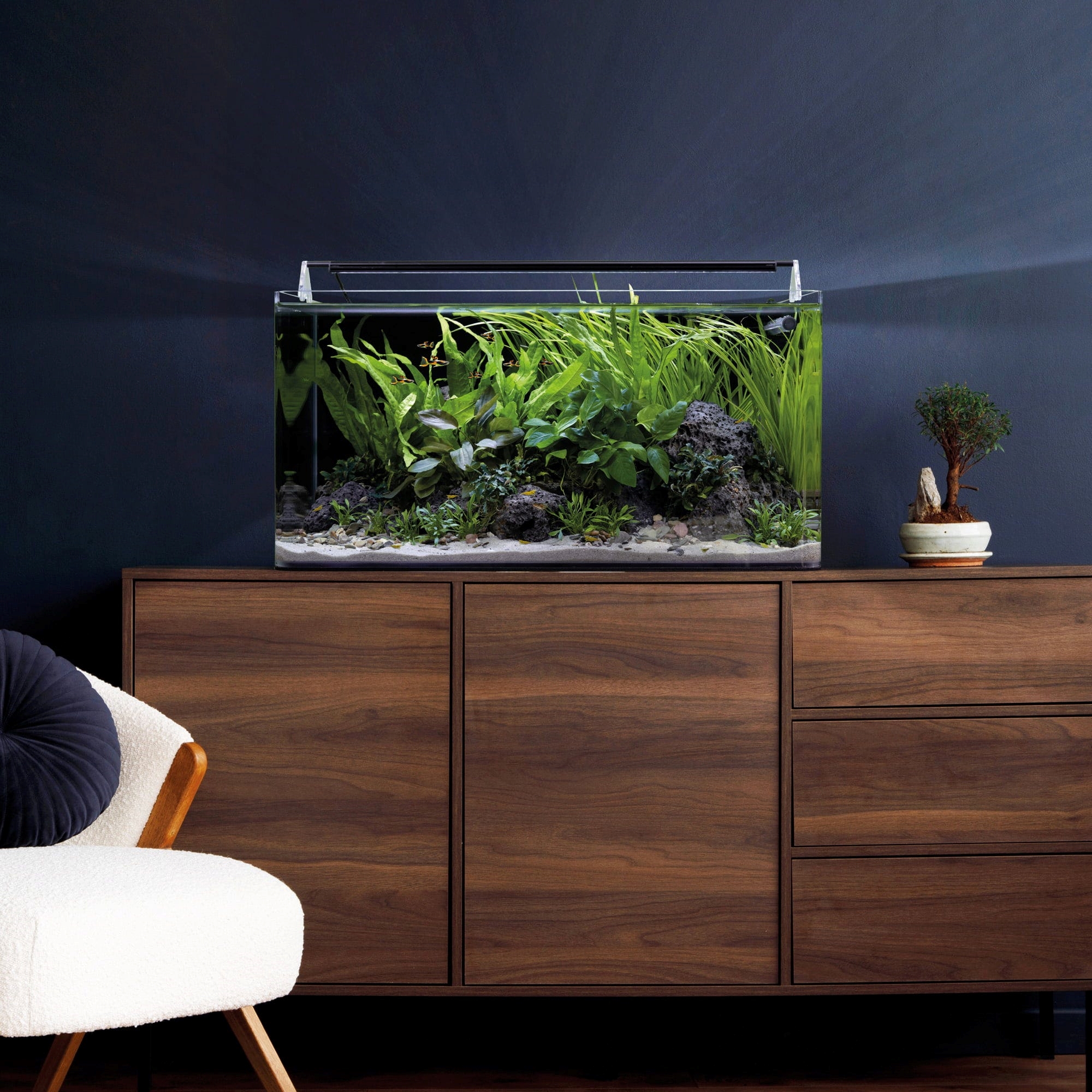 Neomezený prostor pro aquascaping: Šířka 45 cm a hloubka 36 cm nabízejí největší možnou plochu pro tvorbu členitých podvodních krajin s hlubokou perspektivou.