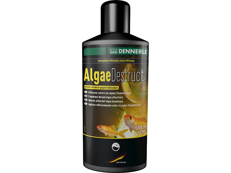Speciální účinná látka proti řasám zasahuje do organismu a metabolismu řas a tím zabrání jejich schopnosti fotosyntézy. Tímto se také zabrání jejich dalšímu růstu. Přípravek Dennerle AlgaeDestruct je zcela neškodný pro vodní rostliny, ryby a mikroorganismy. Účinek vysoce účinné aktivní složky působí po dobu zhruba 2 až 3 týdnů.