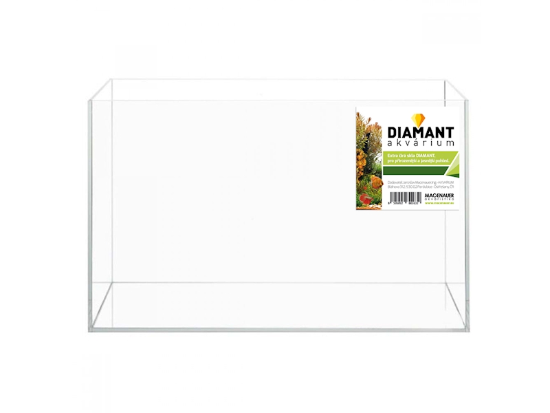 Moderní akvárium s extra čirým sklem DIAMANT pro přirozenější a jasnější pohled dovnitř akvária.