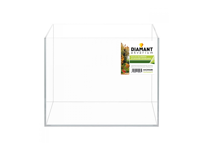 Moderní akvárium s extra čirým sklem DIAMANT pro přirozenější a jasnější pohled dovnitř akvária.