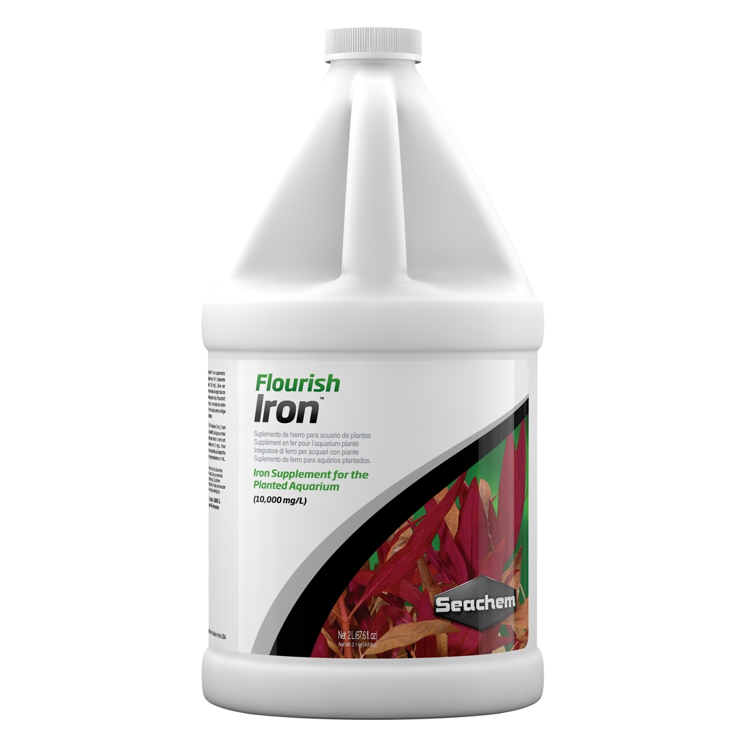 Flourish Iron je vysoce koncentrovaný (10 000 mg/l) roztok glukonátu dvojmocného železa (Fe + 2). Měl by být používán v případech, kdy požadavek na železo překračuje možnosti aplikace přípravku Flourish v doporučené dávce nebo se objeví příznaky nedostatku železa (např. krátké a štíhlé stonky nebo žloutnutí mezi žilkami). Rostliny mohou mnohem snadněji získávat železo z Flourish Iron, než z komplexů EDTA, protože veškeré železo vázané v EDTA je ve stavu iontů železitých (Fe + 3). Vzhledem k tomu, že rostliny vyžadují železo v dvojmocném stavu, musí být vynaložena další fyziologická energie, aby se extrahovalo železo z EDTA-komplexu, které se pak musí přeměnit z trojmocné na dvojmocnou formu. Neobsahuje fosfáty ani dusičnany. Flourish Iron je bezpečný pro bezobratlé, jako jsou krevetky.