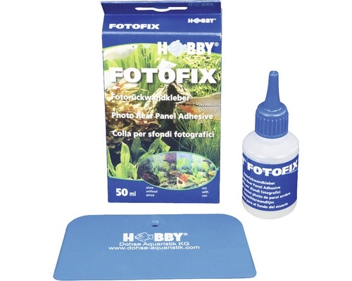Fotofix nalepí bez vzniku bublin vysoce lesklé fotografie z plastové fólie na zadní stěnu akvárií a terárií. S lepidlem na zadní stěnu dosáhnete vysoké ostrosti motivu na fotografii, bez ztemnění způsobeném vzduchem mezi fólií a sklem, bez zrcadlení a vzduchových bublin.